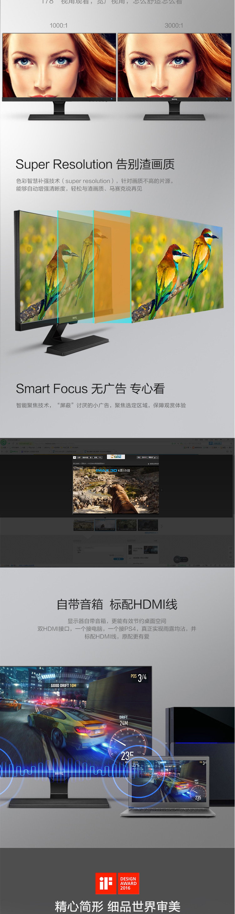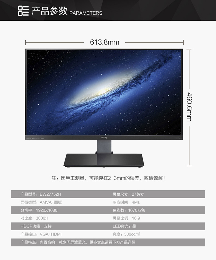 明基(BenQ)EW2775ZH 27英寸智慧调光软硬件滤蓝光内置音箱 爱眼电脑显示器显示屏(HDMI/VGA接口)