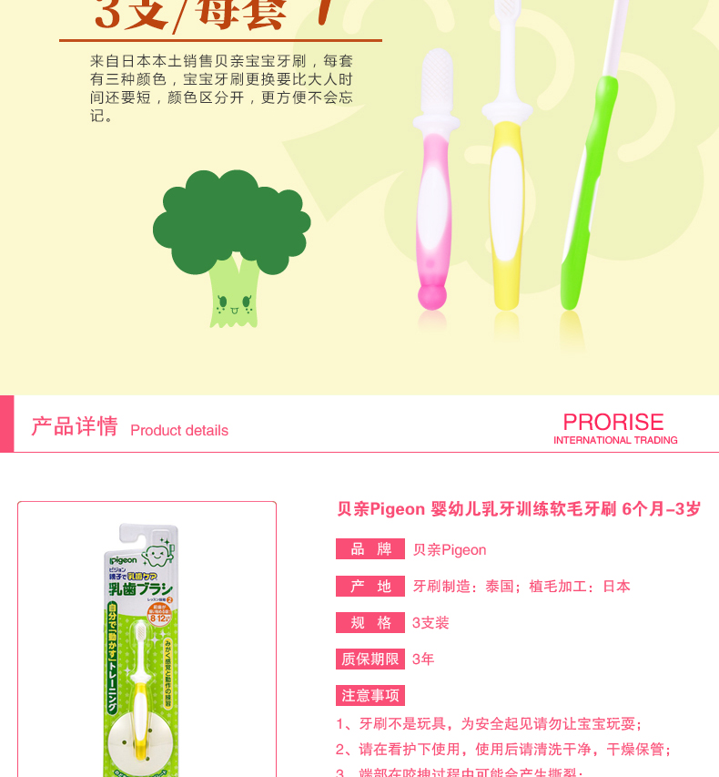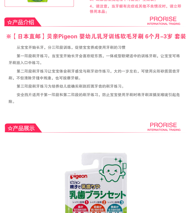 贝亲Pigeon 婴幼儿乳牙训练软毛牙刷 6个月-3岁 套装