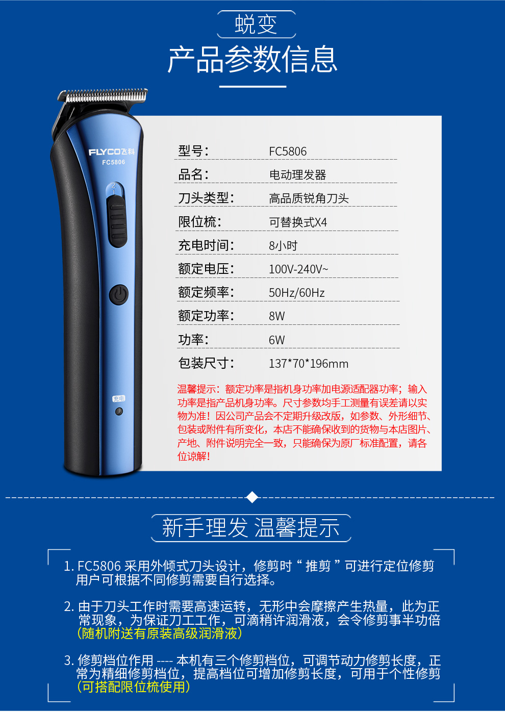 飞科(FLYCO)FC5806专业电动理发器电推剪成人婴儿童充电式电推子