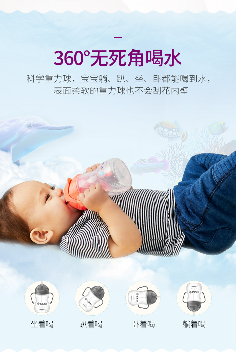 BBOX重力水杯b.box儿童吸管杯宝宝240ml重力球饮水杯防漏