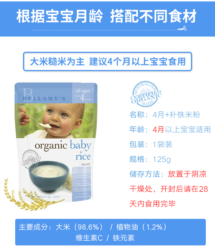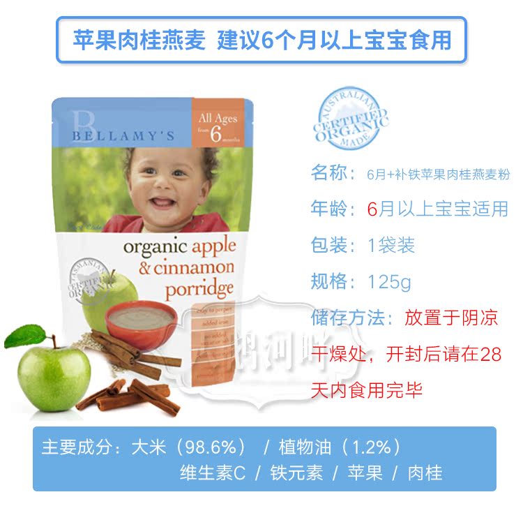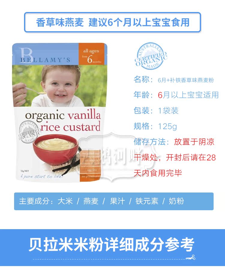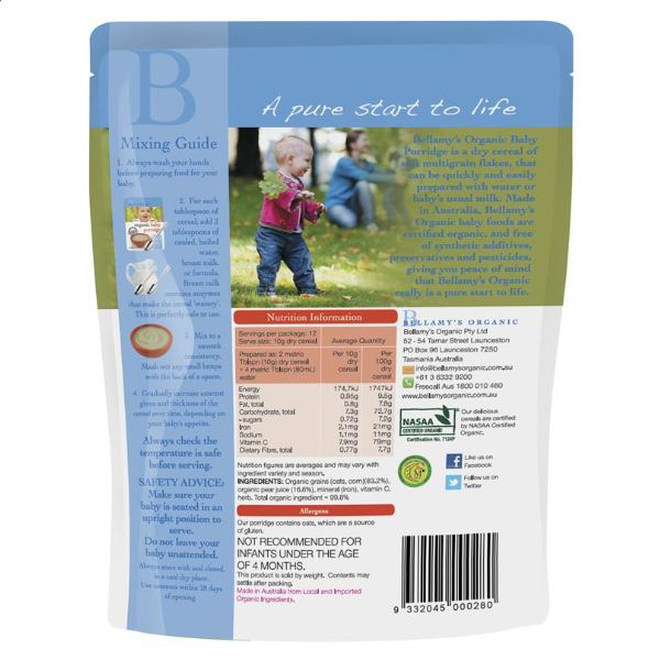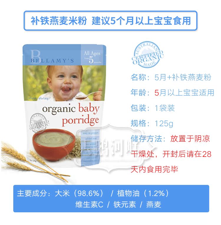 Bellamy's Organic 贝拉米婴儿宝宝有机辅食麦片粥125g
