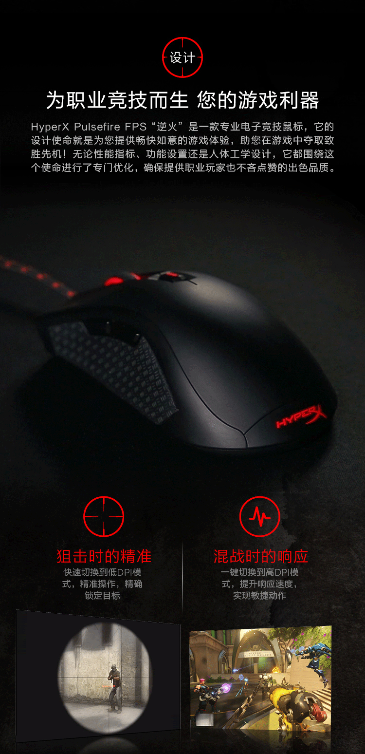 HyperX 逆火 专业FPS电竞游戏鼠标