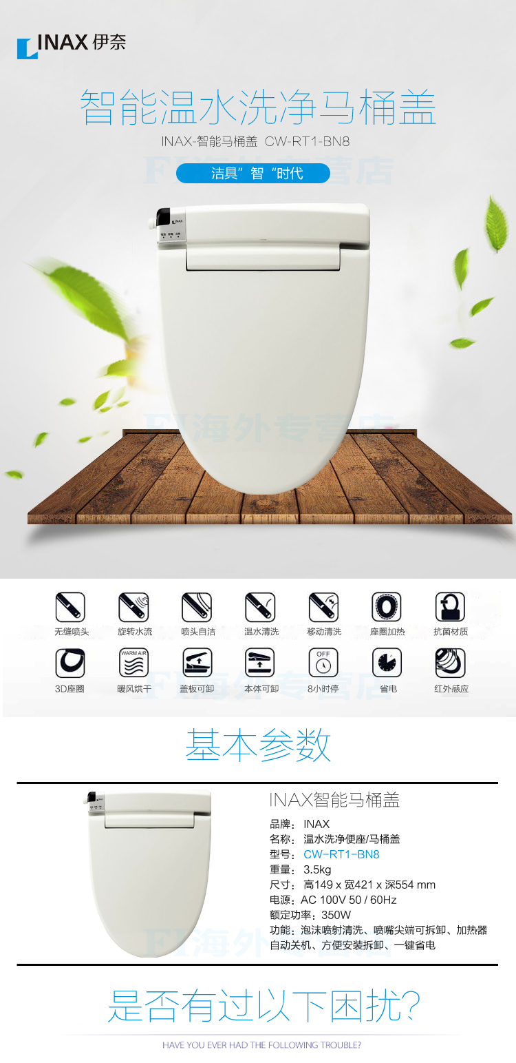 INAX 伊奈 CW-RT1/BN8 智能马桶盖 洁身器 电子坐便盖 电压100V CW-RT1/BN8