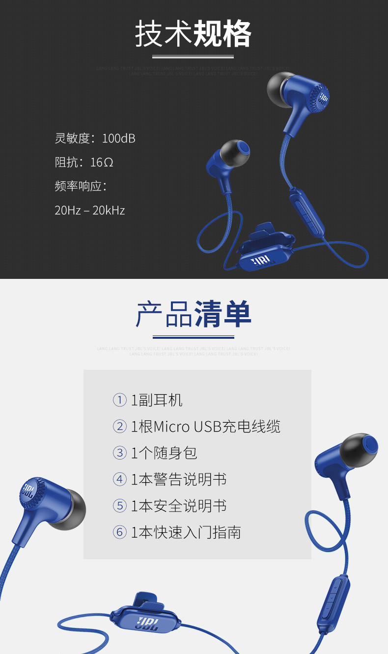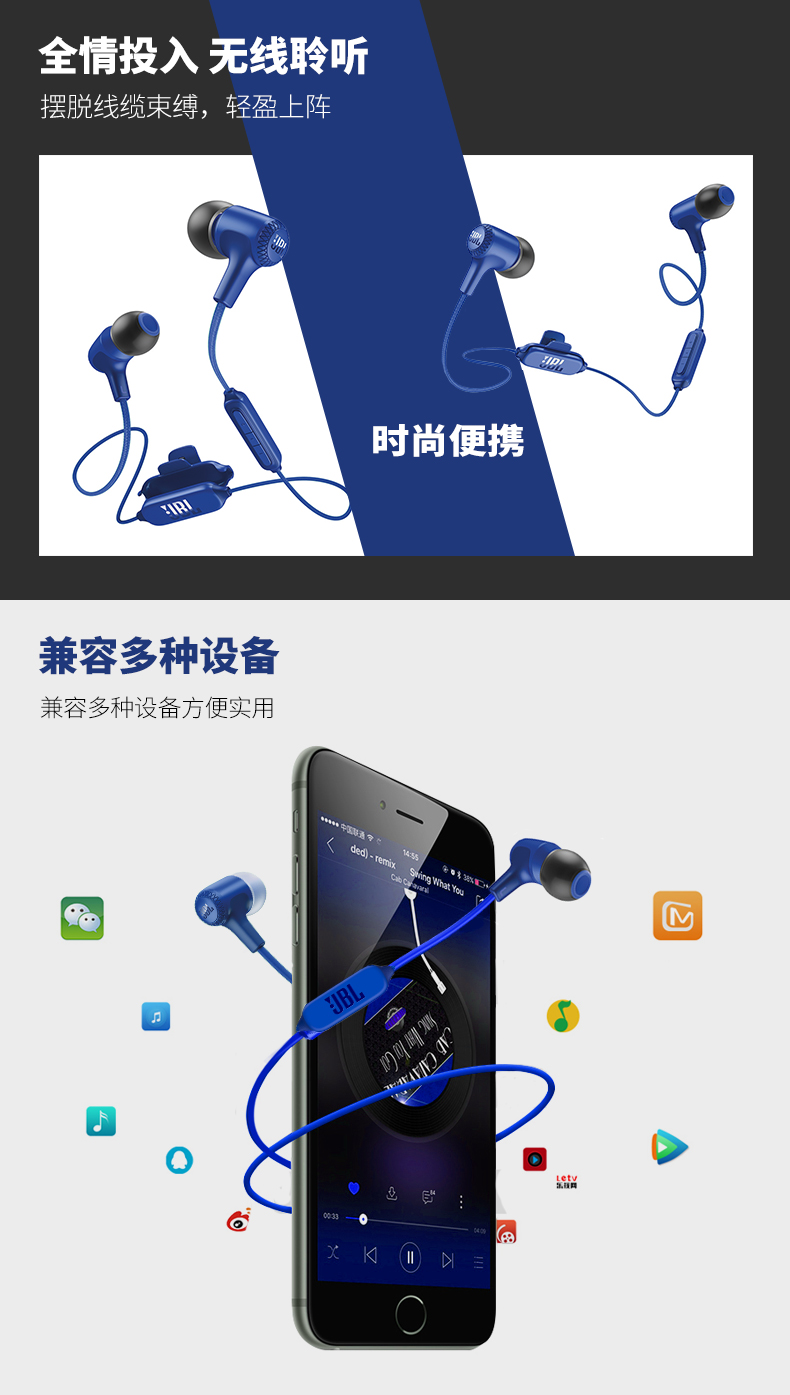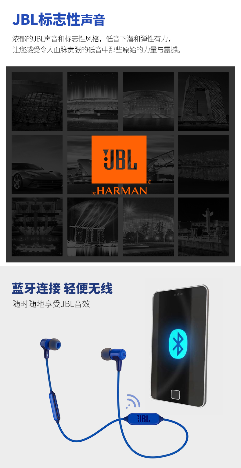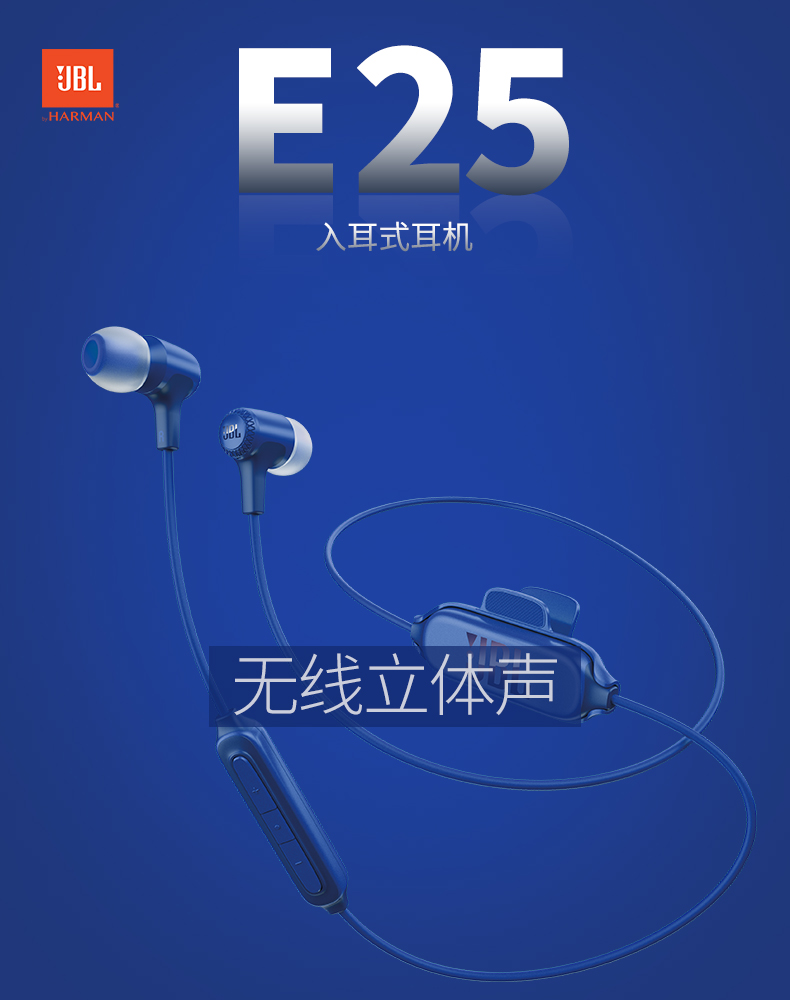 JBL E25BT 无线蓝牙入耳式立体声音乐耳机 多点对应/可通话